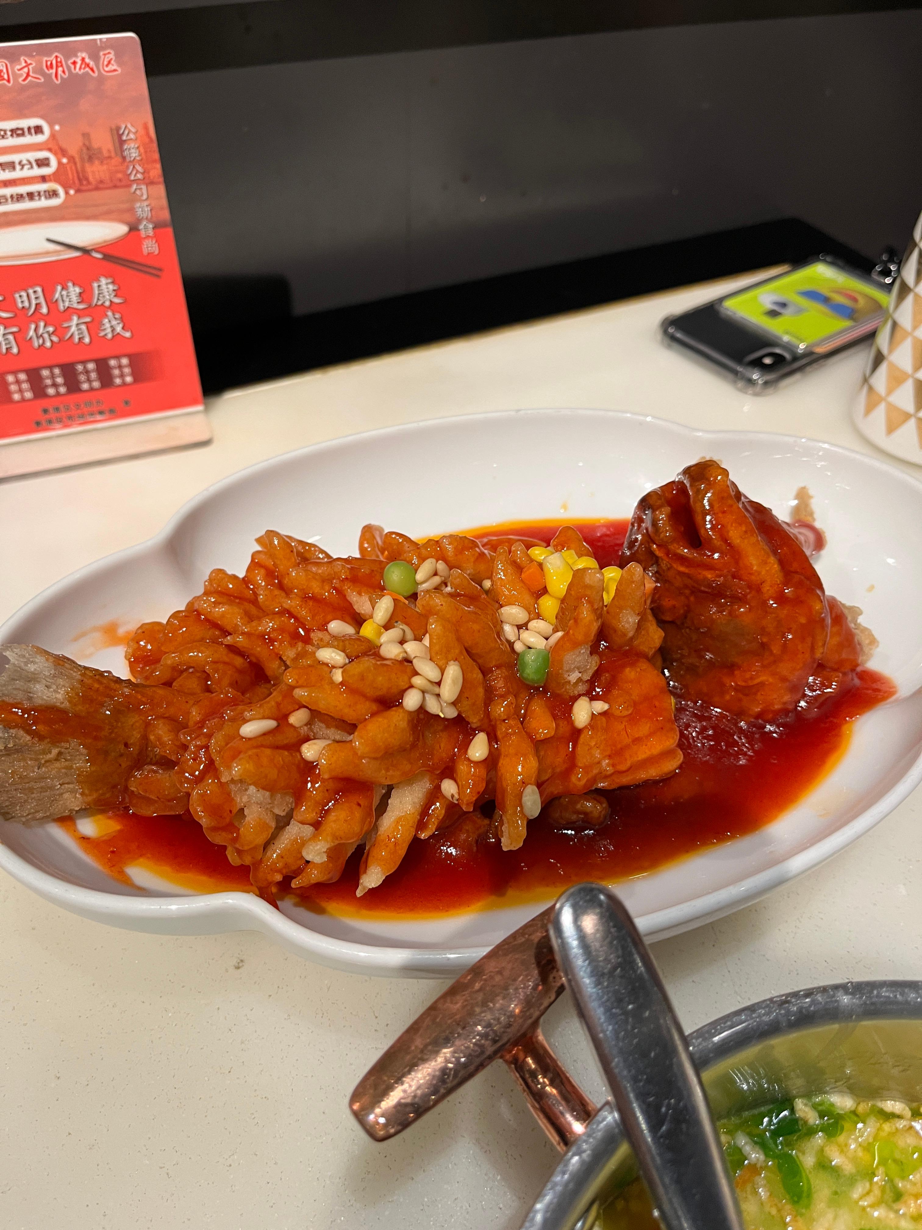 그리고 튀긴 생선 요리. 소스를 어향소스라고 칠리소스라고 해야하나. 여튼 손질에 손이 참 많이 갈 것 같은 음식이 나왔다. 역시 맛있었음.