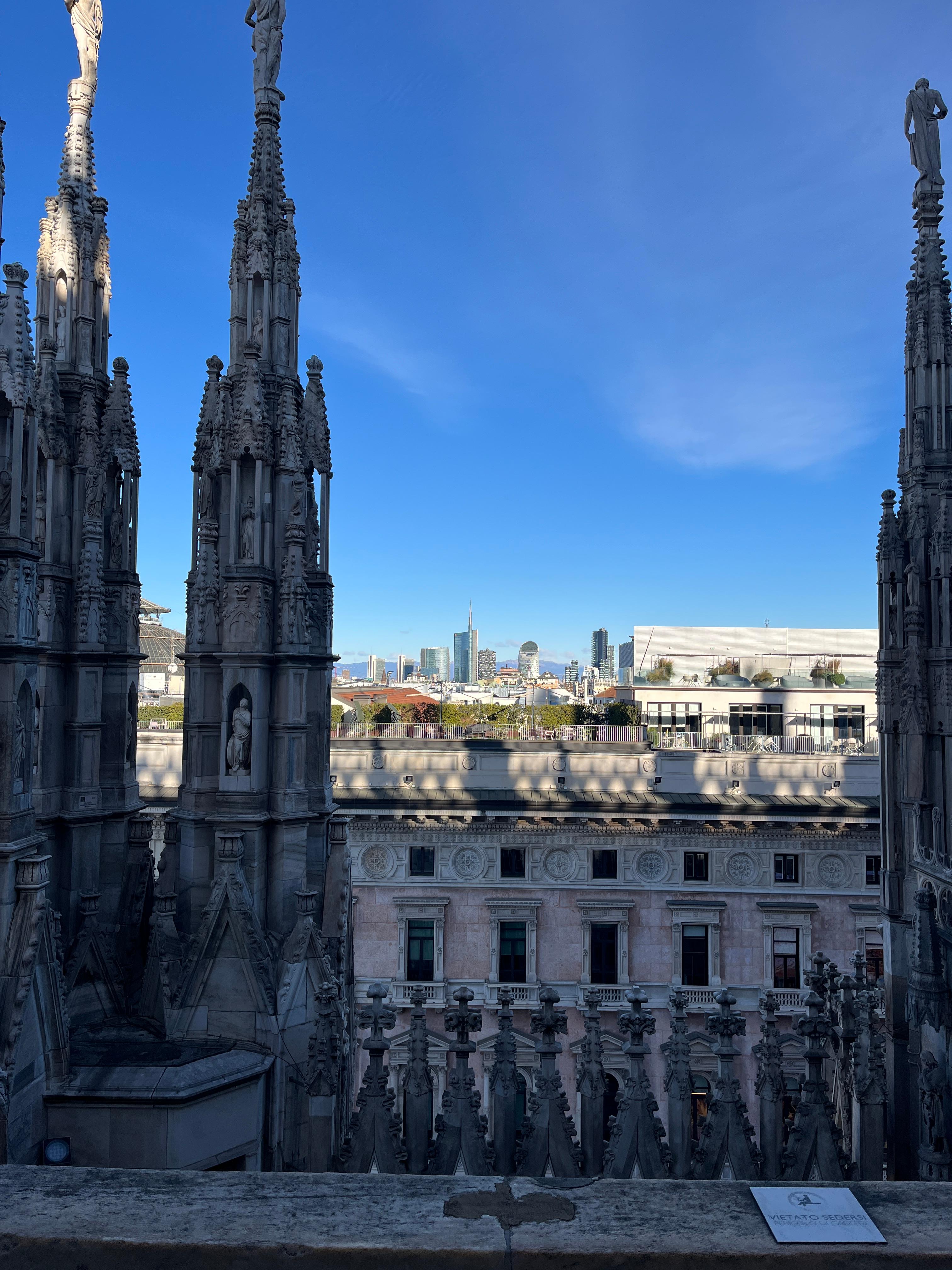 고딕 성당 특유의 첨탑. 보통은 정말 찌를듯이 높이 솟기 마련인데, 이탈리아에 이르러서는 오히려 주변 건물과의 비율와 대칭성을 고려한 느낌.