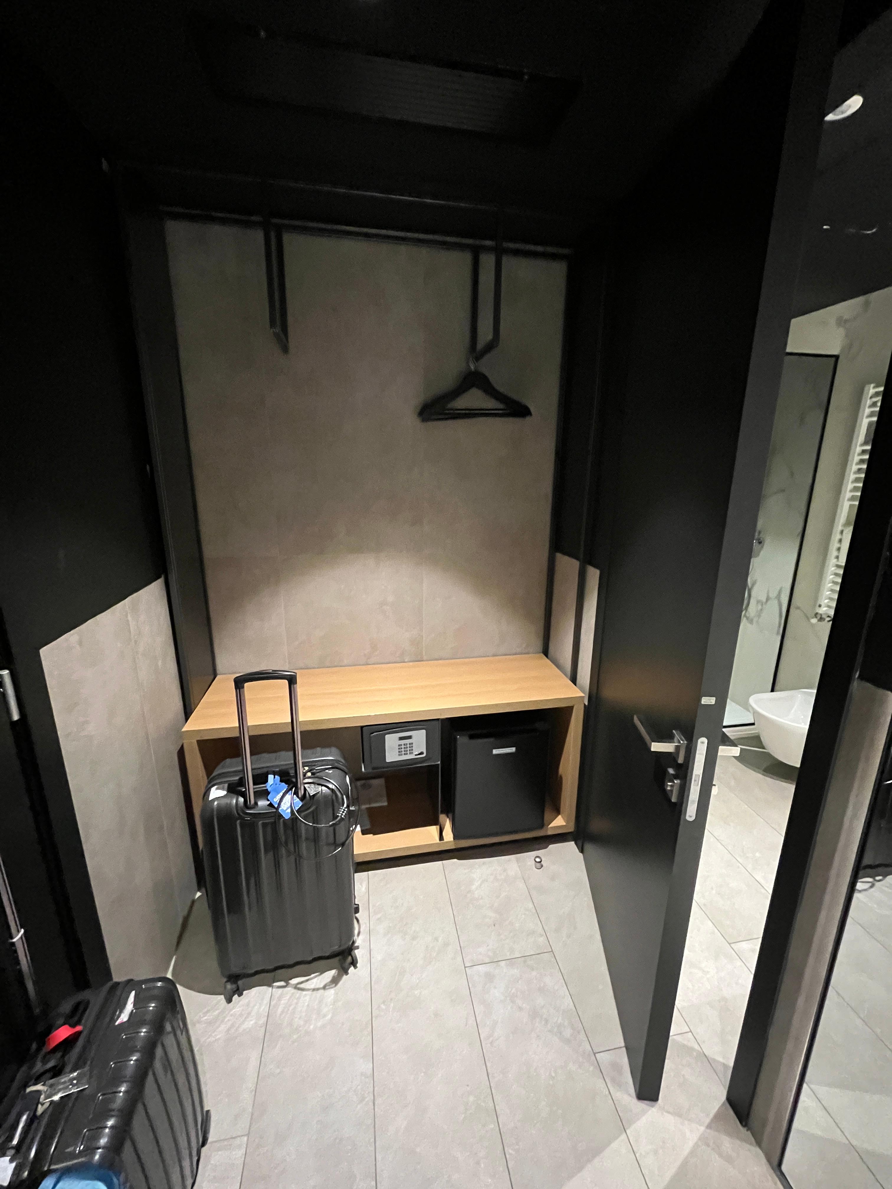 캐리어 풀어놓은 공간이 애매하게 넓다. 애매하다고 하는 이유는, 캐리어 2개를 다 펼쳐놓으면 이게 문을 막아버려서 나갈 수가 없음. 결국 하나는 좀 덮어놔야 해...